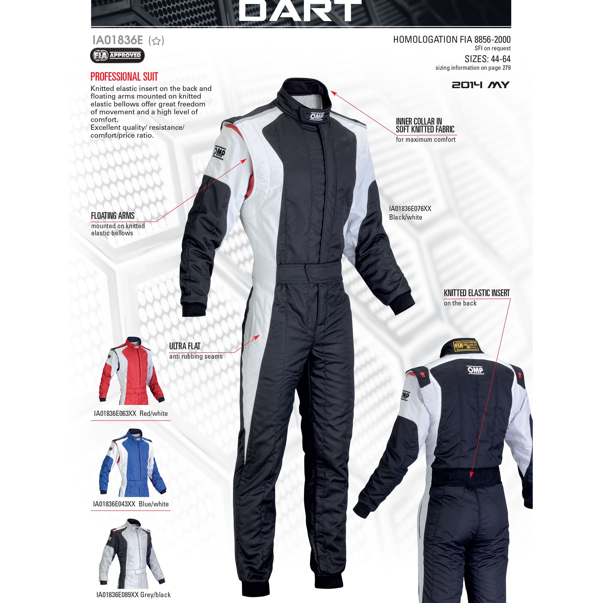 Двухслойный комбинезон. Вес: 400 гр./m2. Омологация: FIA 8856-2000.