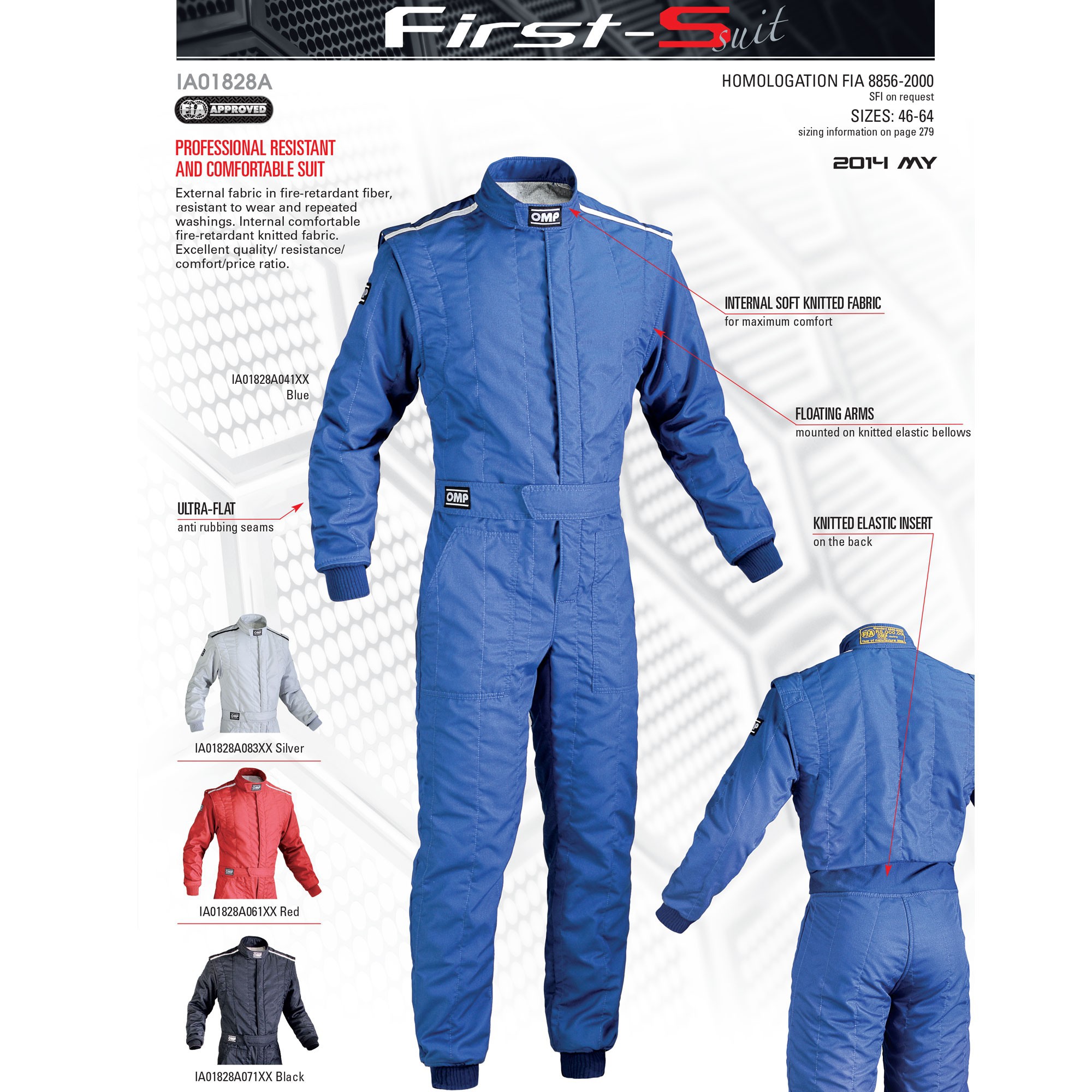 Двухслойный комбинезон. Вес: 400 гр./m2. Омологация: FIA 8856-2000.